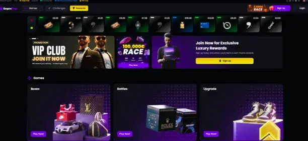 Cases.gg to platforma, która zaczynała od loot boxów związanych z gamingiem, ale szybko rozszerzyła ofertę na mystery box elektronika. Znajdziesz tu boxy z akcesoriami komputerowymi, urządzeniami mobilnymi czy drobnymi gadżetami do codziennego użytku. Wiele zależy od aktualnie dostępnych kolekcji – od czasu do czasu pojawiają się także limitowane edycje z markowymi podzespołami.
